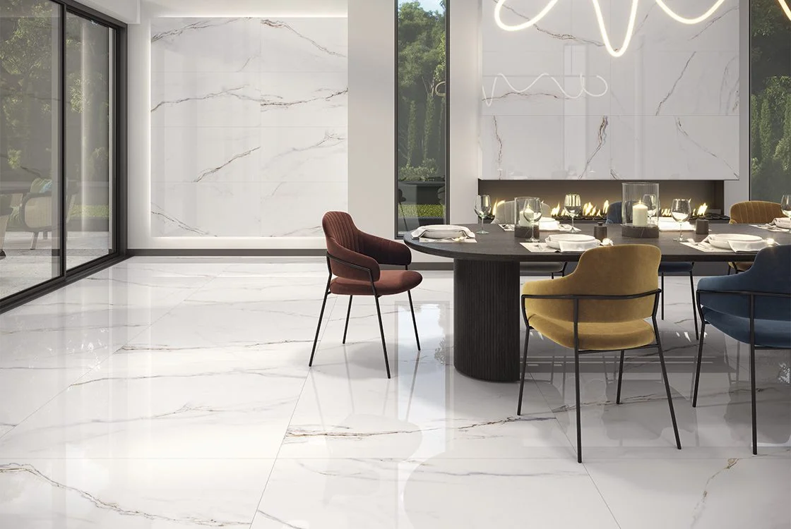 Transform floors with luxurious marble tiles, offering unmatched durability and a glossy, reflective finish. Ideal for high-traffic areas, these tiles resist scratches and wear while adding grandeur to homes, lobbies, or boutique stores. Choose from geometric patterns or classic veining.